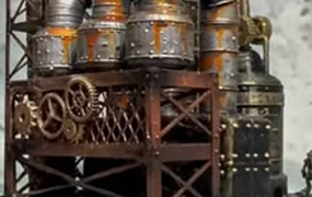 ミニチュア制作。歯車が刻む時間、配管を流れる蒸気。 かつての産業革命の余韻が漂う、失われた時代の工場跡をスチームパンクの雰囲気で再現しています。